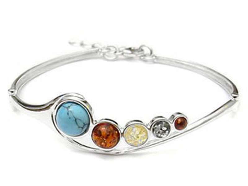 Stone arrangement: Cognac amber, yellow amber, green amber, (RECO)turquoise.