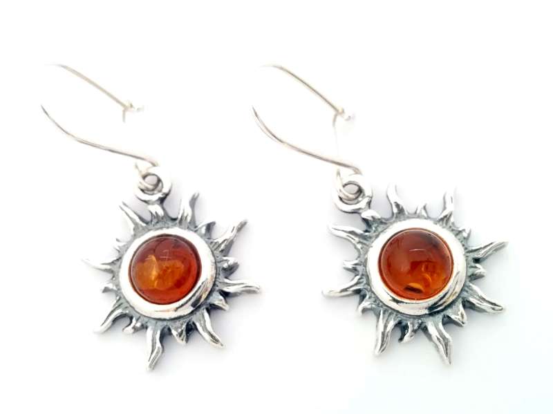 Beautiful 925 Sterling Silver French Style Sun Earrings with Natural Baltic Amber.