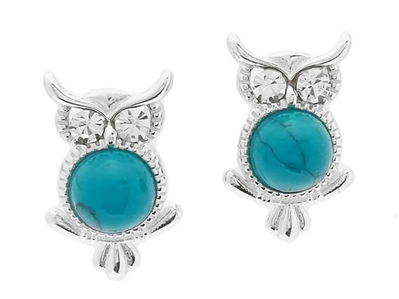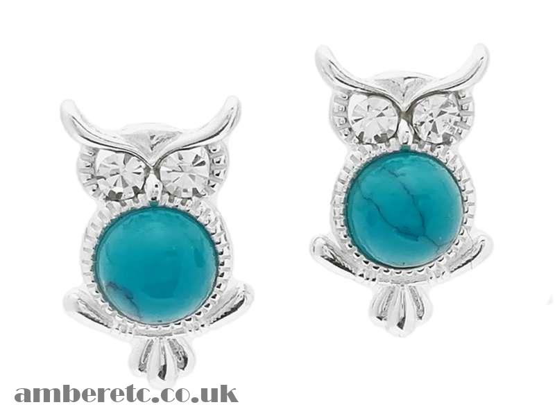Sterling Silver Owl Stud Earrings with Turquoise (AMB0975)