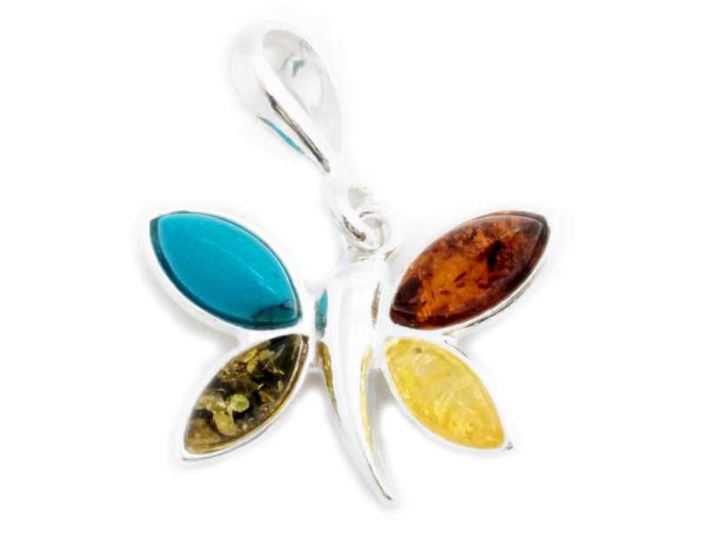 Stone arrangement: Cognac amber, green amber, yellow amber, (RECO)Turquoise.