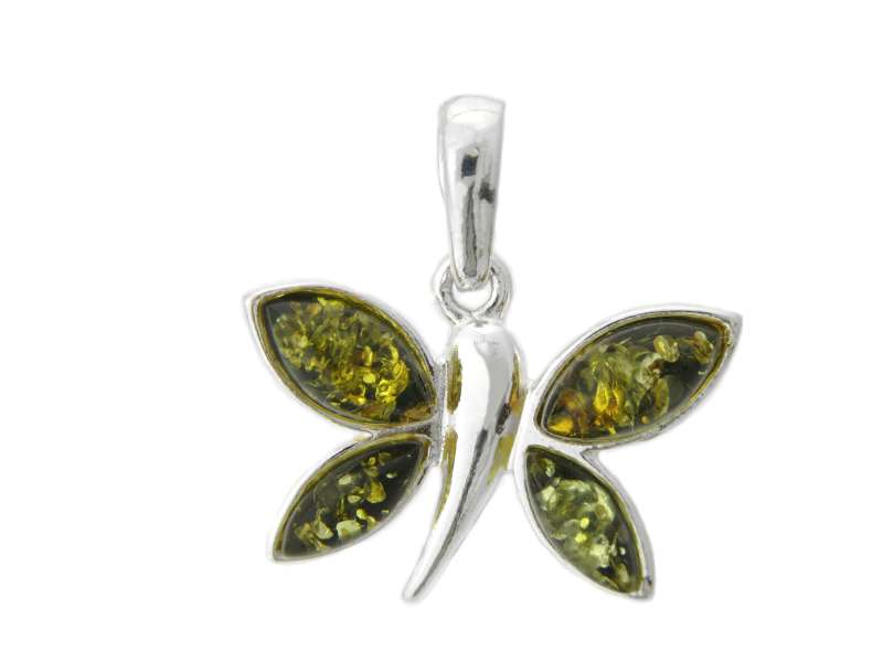 Beautiful 925 Sterling Silver Small Butterfly Pendant with Green Baltic Amber.