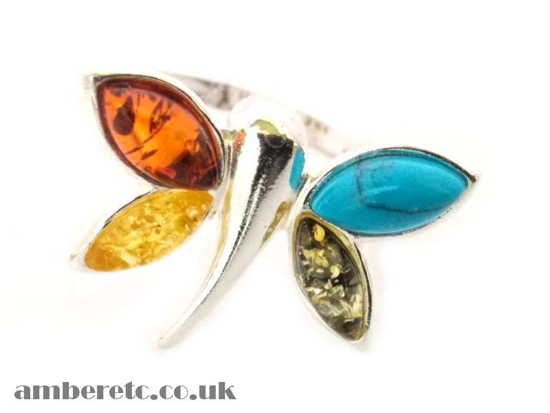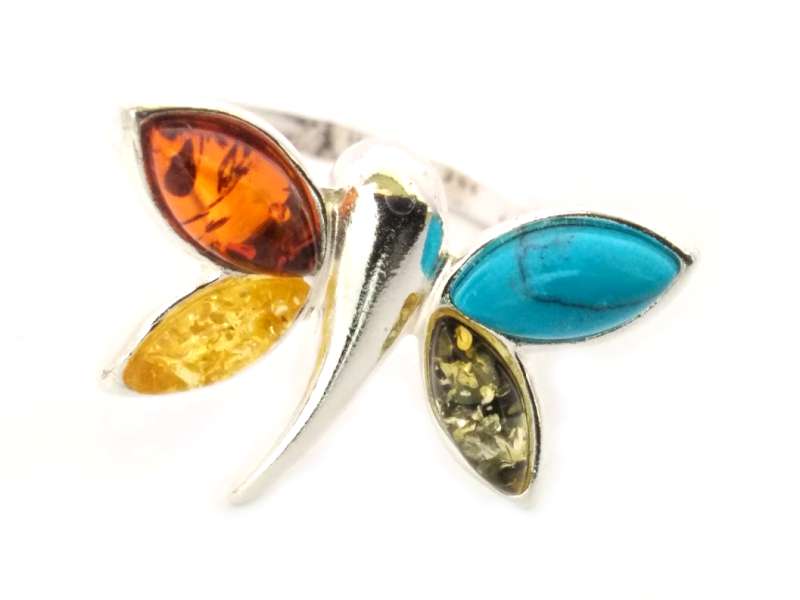 Stone arrangement: Cognac amber, Green amber, Yellow amber, (RECO)Turquoise.