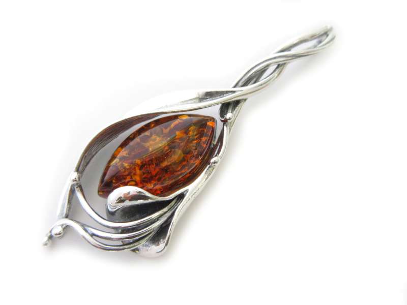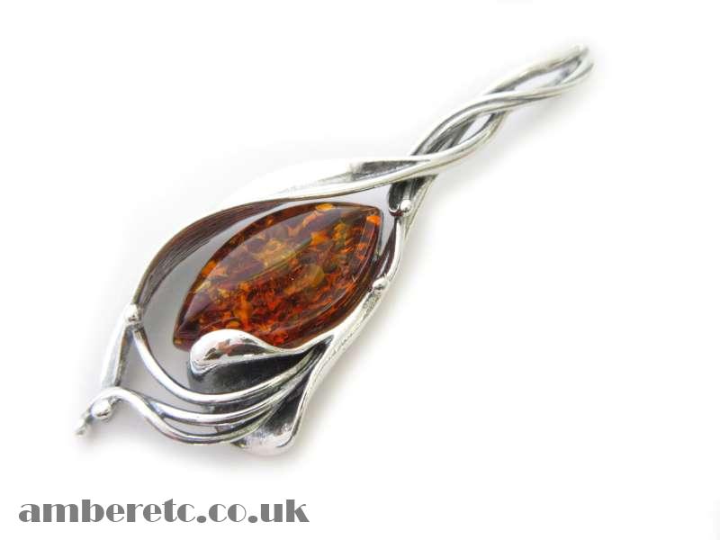 Beautiful 925 Sterling Silver Traditional Style Pendant with Natural Baltic Amber.