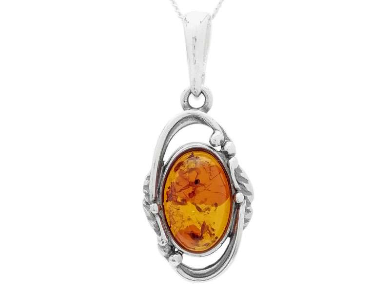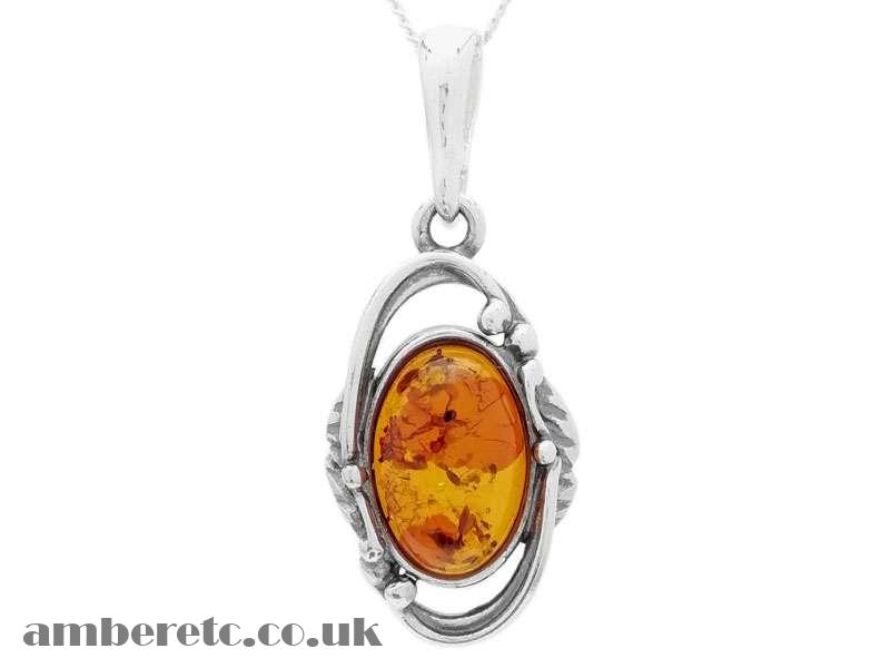 Beautiful 925 Sterling Silver Traditional Style Oval Pendant with Natural Baltic Amber.