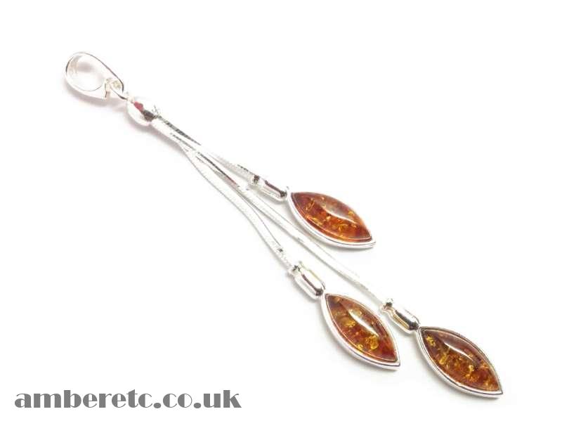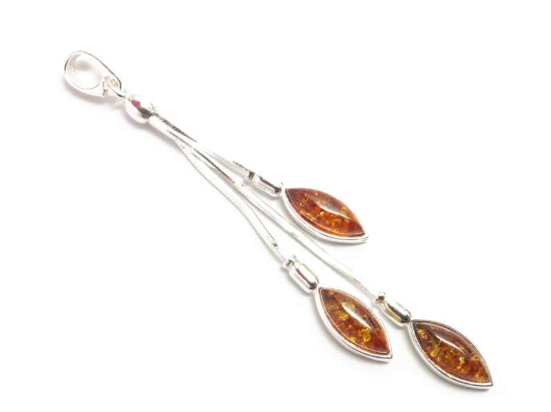 Beautiful 925 Sterling Silver Triptico Pendant with Natural Baltic Amber.