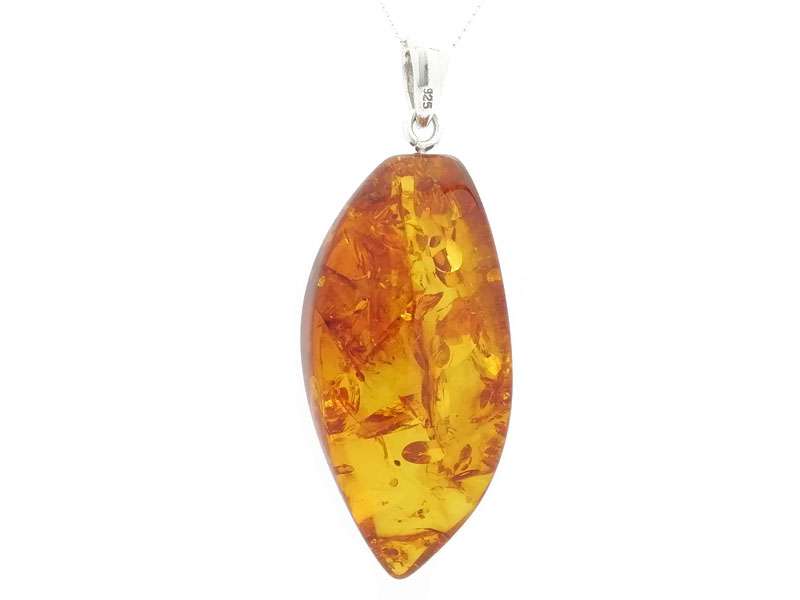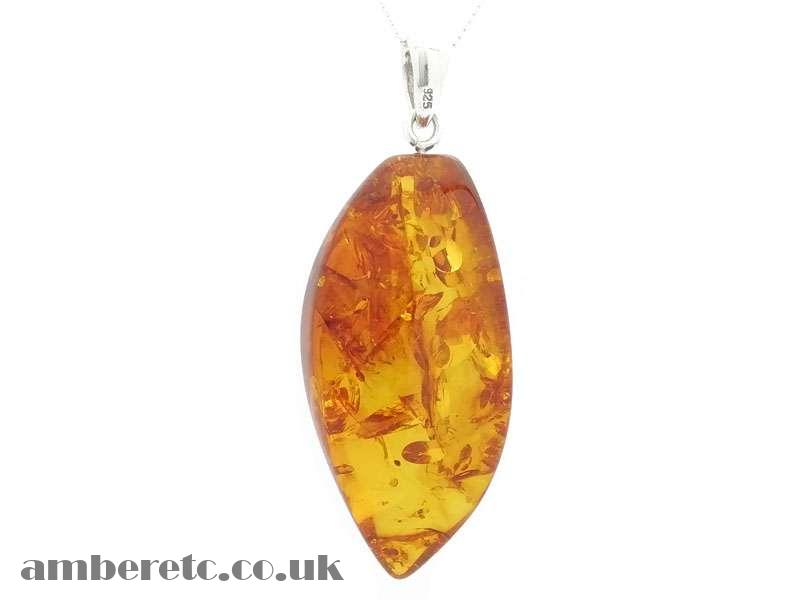 Hand-cut, shaped, and polished, Baltic amber stone pendant finished with 925 sterling silver bail.