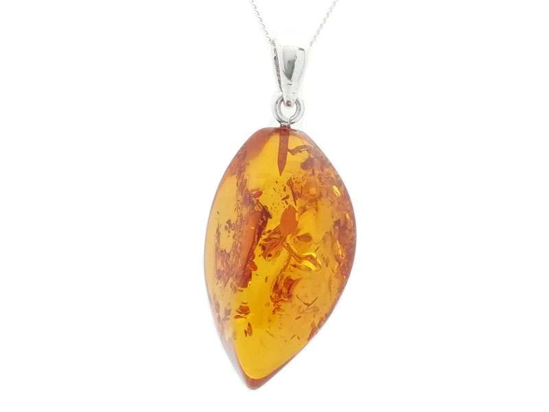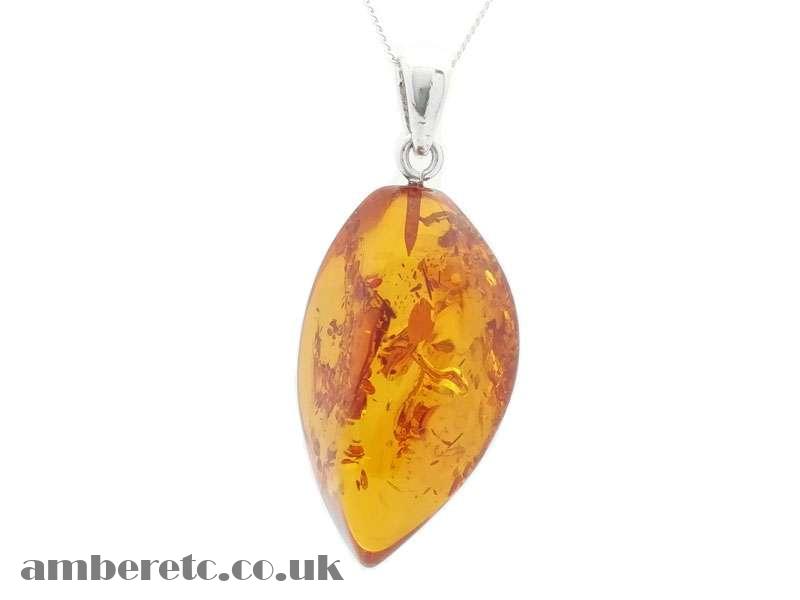 Hand-cut, shaped, and polished, Baltic amber stone pendant finished with 925 sterling silver bail.