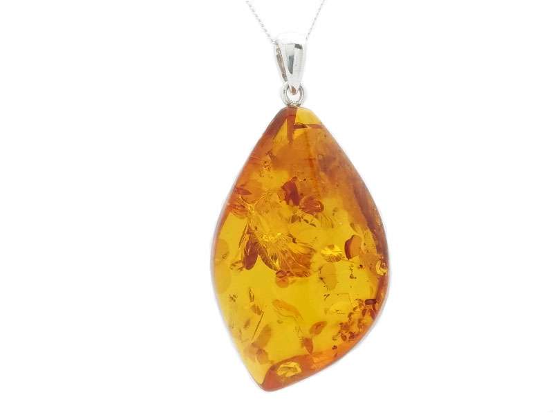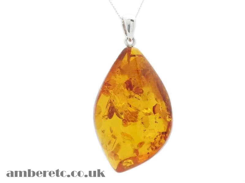 Beautiful pendant with natural Baltic amber stone hand cut shaped and polished finished with a sterling silver bail.