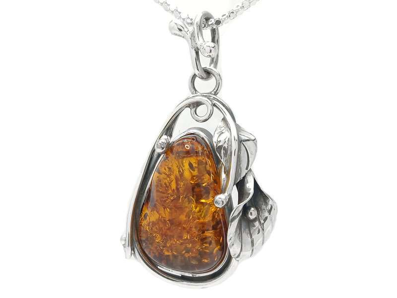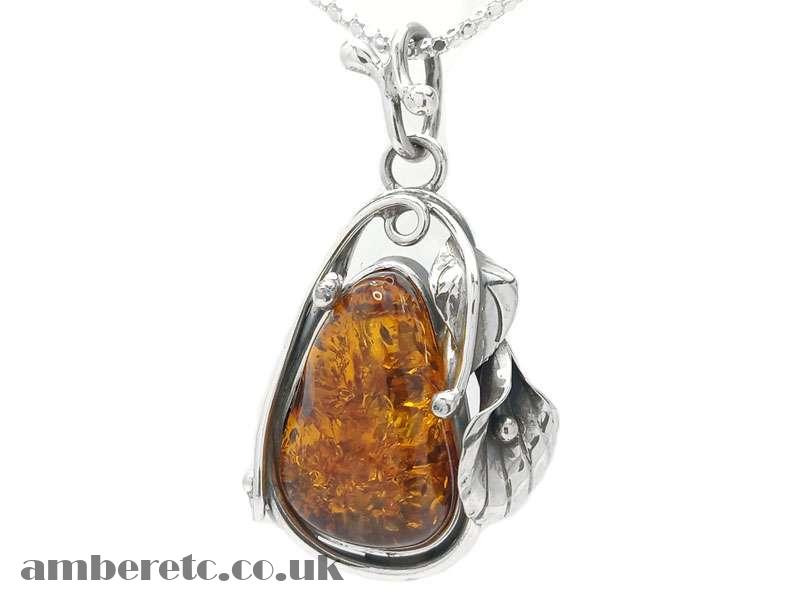 Unique Traditional Amber Pendant set in Sterling Silver.