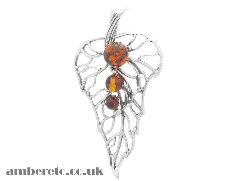 Vein Pattern Large Silver Leaf Pendant with Natural Baltic Amber.