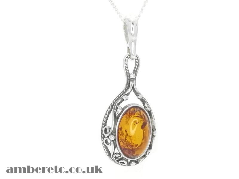 Beautiful 925 Sterling Silver Vintage Style Pendant with Natural Baltic Amber.