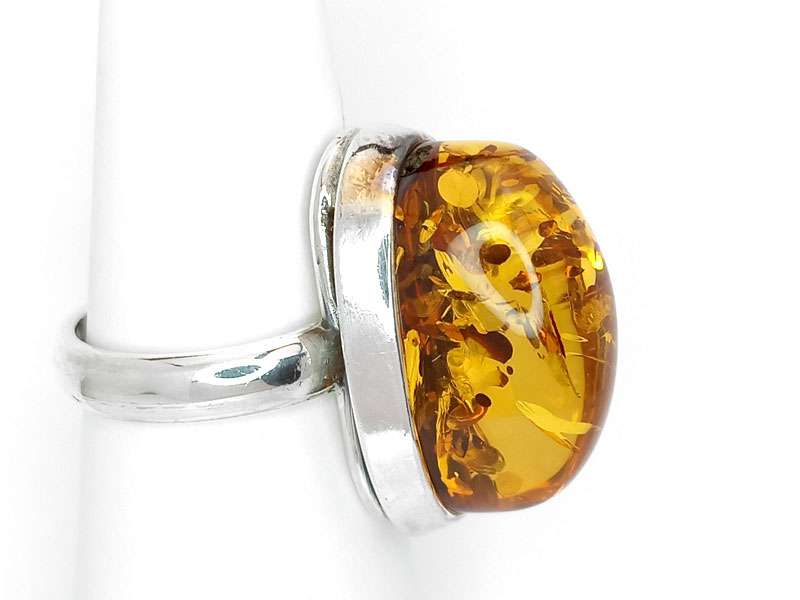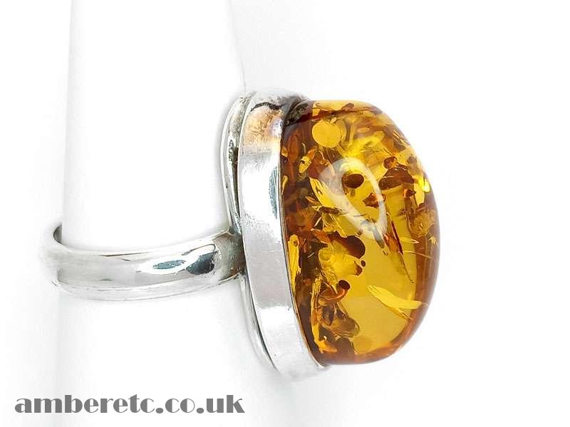 Beautiful, large silver ring with a large amber stone. If you are looking for a unique piece, this is it.