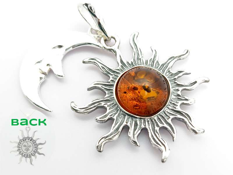Beautiful 925 Sterling Silver Moon and Sun Mystic Pendant with Baltic Amber.