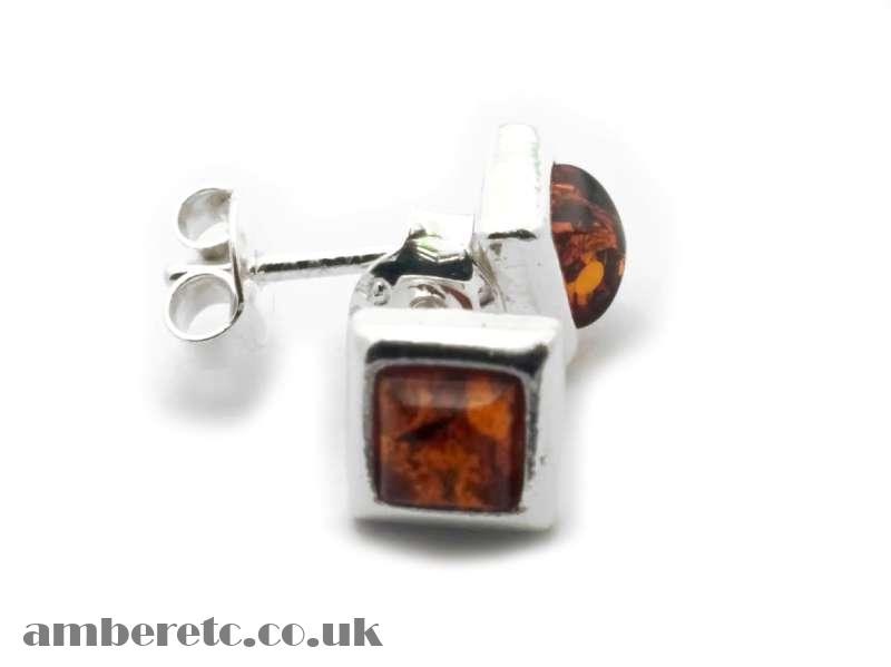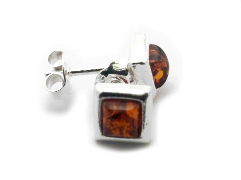 Square Shape Silver Stud Earrings with Amber